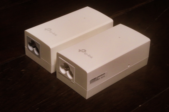 もう既に上で述べましたが、この画像の左側がTP‑Link EAP110 Access Pointに付属していたPoE給電アダプターで、右が上に紹介しているTP‑LinkTL-POE2412G(UN) 24V Passive PoE Adapterです。