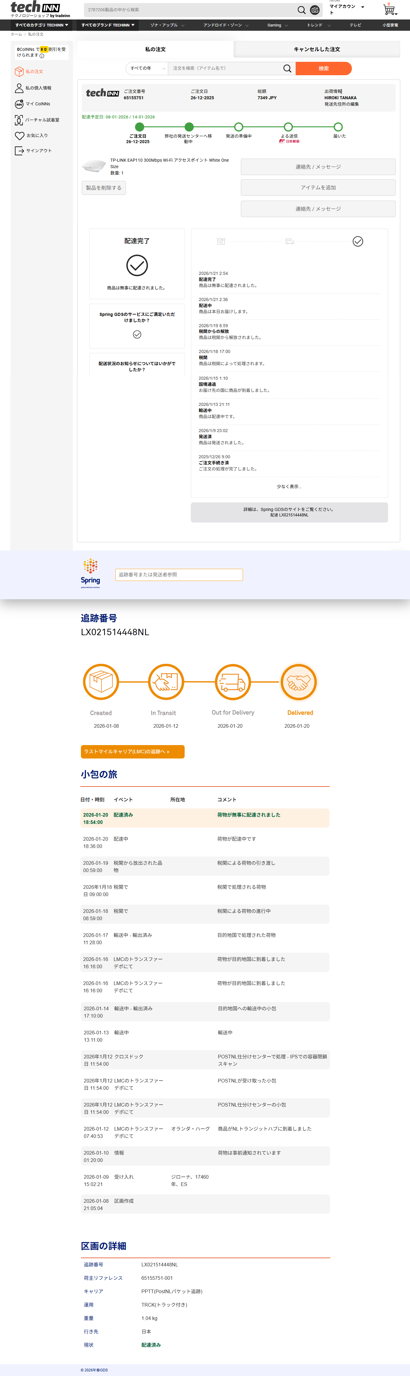 さて、注文した荷物は流石にNew Yearシーズンをそっくり挟んでましたので、到着は当初の予定よりもおよそ1週間遅れて、年が明けた2026年1月20日に日本郵便のInternational ePacket Light 小荷物扱いで届きました。