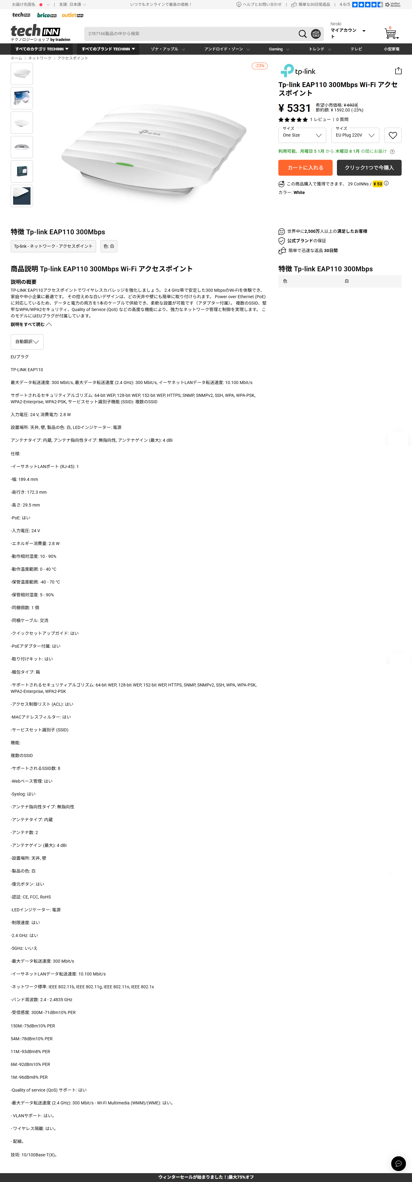 Tp‑link EAP110 300Mbps Wi‑fi アクセスポイント(お持ちのTP-Link EAP110)は、現在 TP-Link公式サイトの最新製品ラインアップには載っていません。