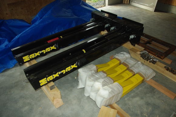 なにしろ重いので、支柱からは油圧シリンダーとスライドブロックを取り外して別々に運びました。