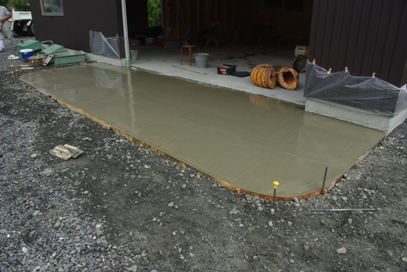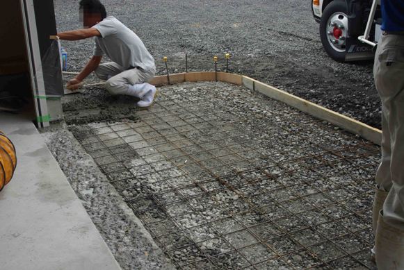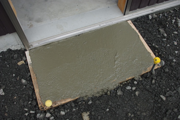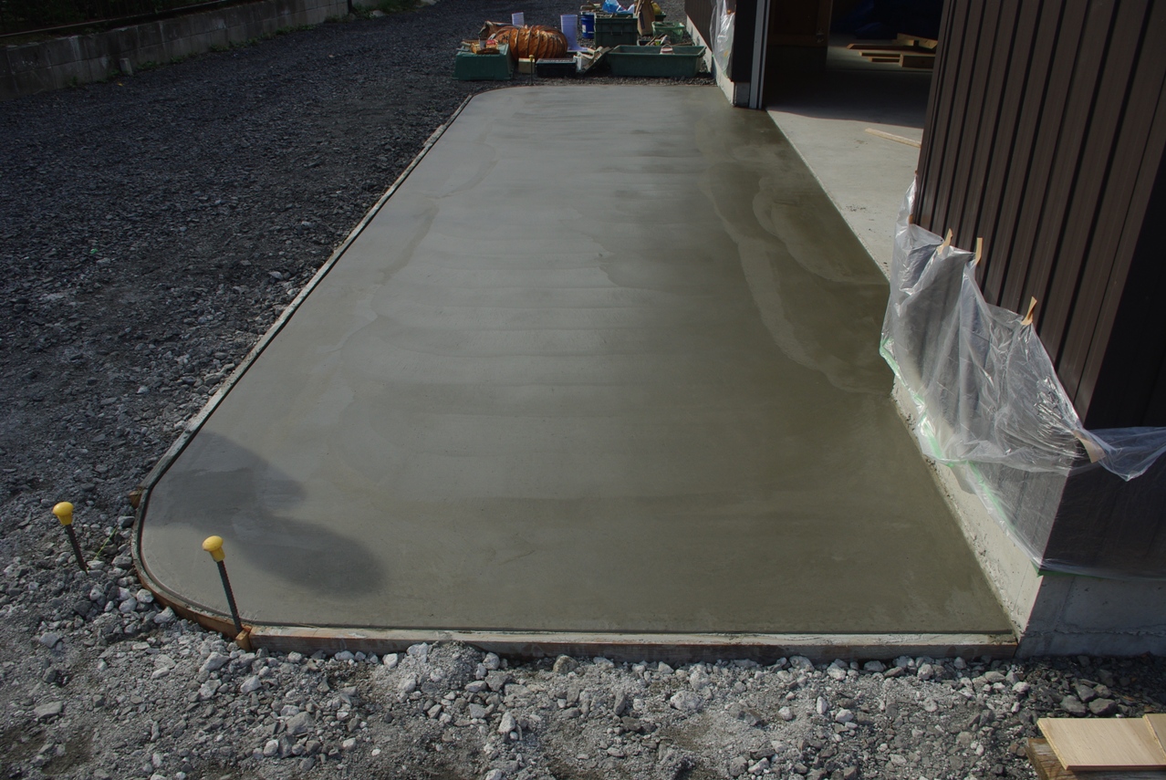 こちらの倉庫入り口の外構アプローチも、3回目の鏝押さえが終わって、全ての作業が完了しました。