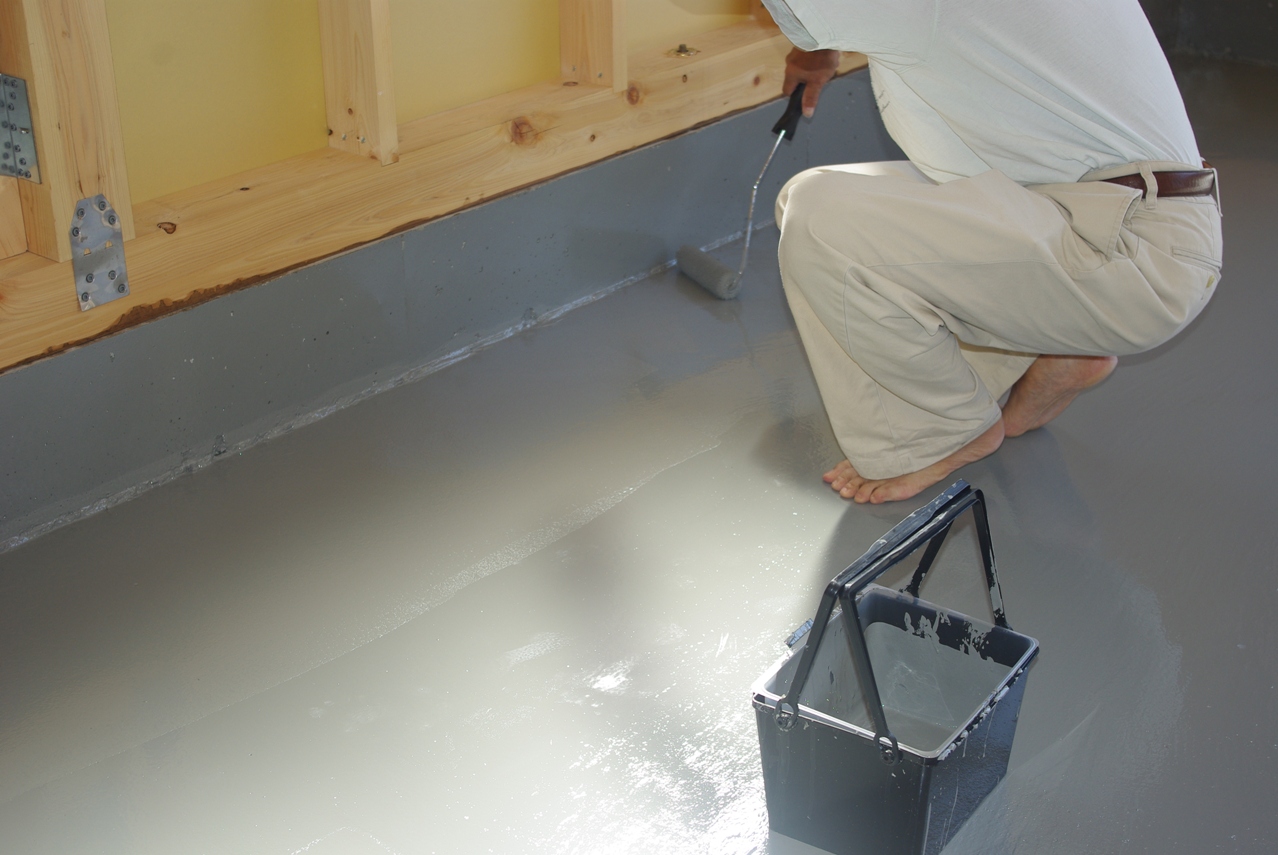 立ち上がりは度塗りしないことに決めていましたので、アンカー部分だけ簡単に刷毛塗りをして、スグに床面の塗装を開始しました。